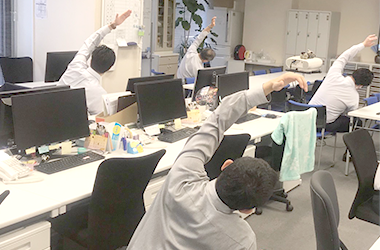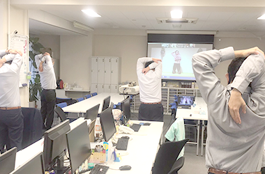 毎週月曜、オフィスで朝ヨガを全社員で行っています。